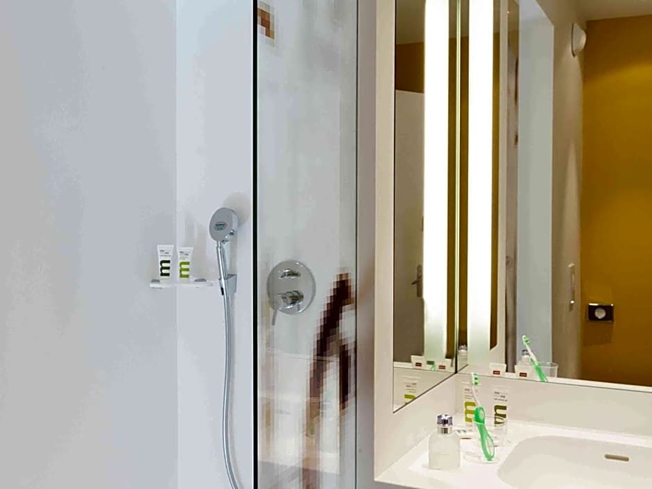 Decorated in a contemporary style, the rooms provide a small refrigerator, a courtesy tray, a safety deposit box and a flat-screen TV. The private bathroom is complete with a bathtub or shower and a hairdryer.